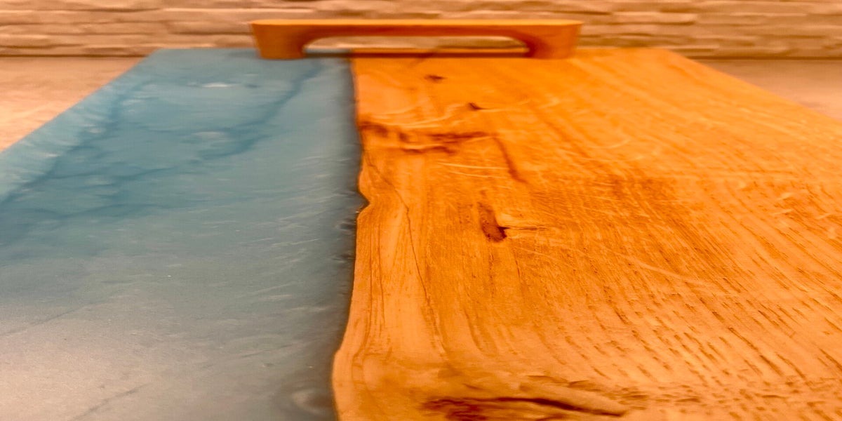 Parmi nos créations les plus emblématiques, nos plateaux en noyer, chêne ou hêtre, sublimés par de la résine époxy, sont sans aucun doute nos pièces maîtresses. Nous mettons en valeur les veines naturelles et les irrégularités du bois. Chaque pièce demande une sélection rigoureuse des plateaux, un travail précis du moulage et du coulage, ainsi qu'un ponçage et polissage haut de gamme.