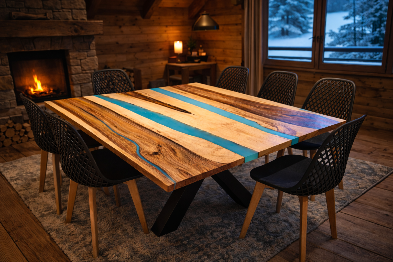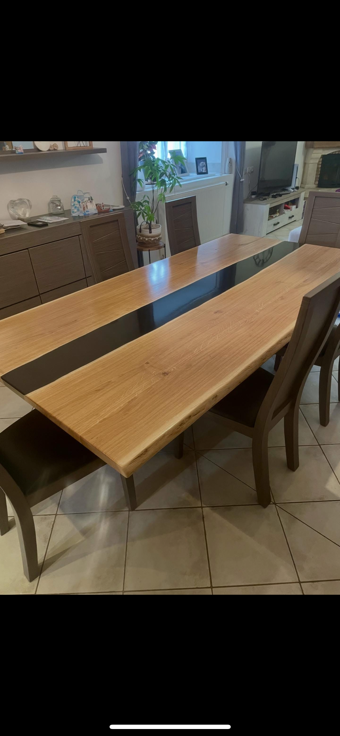 Pour l'une de nos tables les plus admirées, la fissure centrale n'a pas été créée — elle était déjà là. Beaucoup auraient coupé cette partie, considérant cela comme une faiblesse. Moi, j’ai choisi de la conserver et de la remplir de résine pour transformer cette "imperfection" en un point focal captivant. C'est notre philosophie : les imperfections peuvent devenir la partie la plus précieuse et la plus belle d’une création. Elles donnent du caractère, de la vie, et une âme à chaque meuble. Laissez-vous inspirer par la beauté du bois et la magie de la résine.